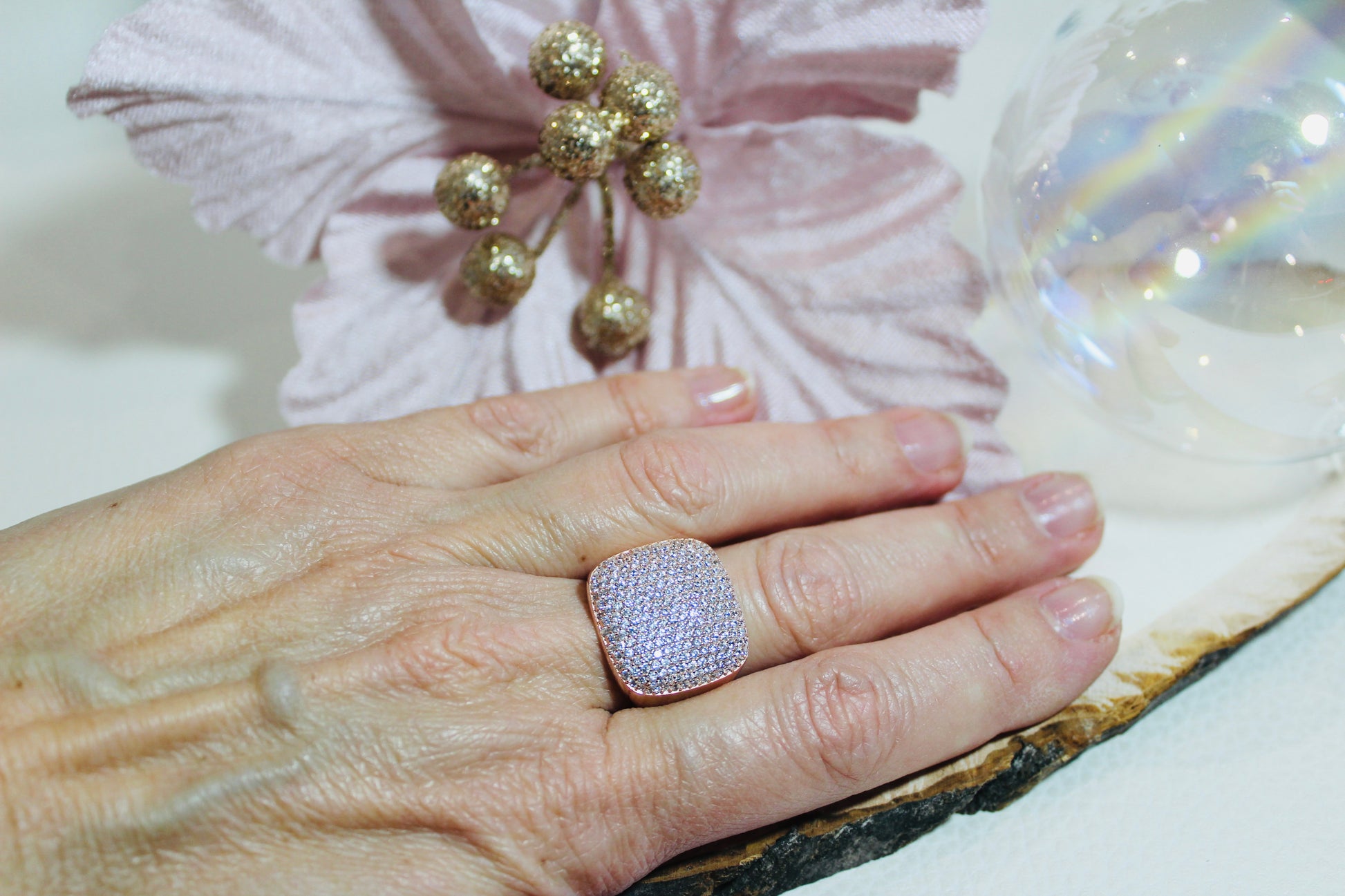 Irene è un anello cocktail dal carattere importante, equilibrato da un design elegante e armonioso. La sua superficie compatta, ricoperta da un luminoso pavé di zirconia cubica, cattura la luce con intensità senza risultare eccessiva. Realizzato in argento 925 e rifinito con placcatura in oro rosa, è dolcemente regolabile dalla misura 16 alla misura 18 massimo. Un gioiello pensato per chi ama farsi notare con discrezione, scegliendo dettagli che parlano di forza e consapevolezza. Disponibile in due varianti di colore, entrambe espressione di una bellezza decisa ma raffinata. Irene è equilibrio, luce, presenza. Forza che non ha bisogno di urlare.