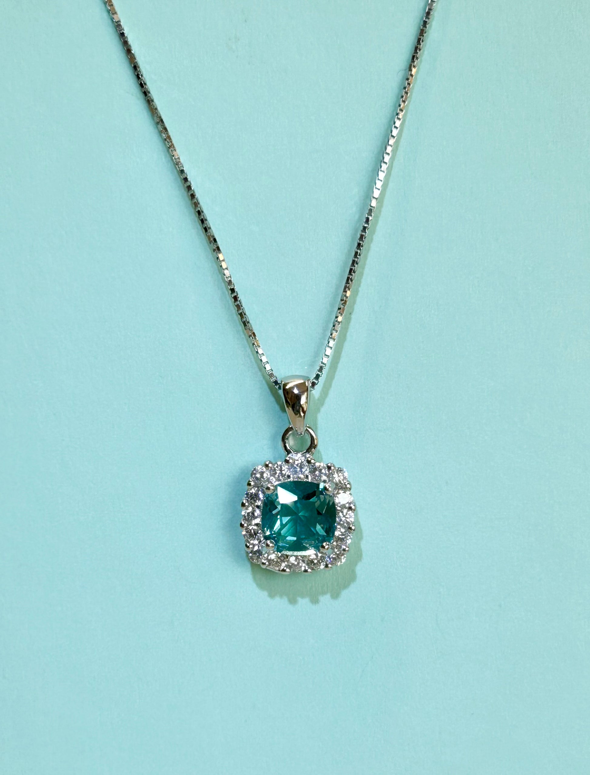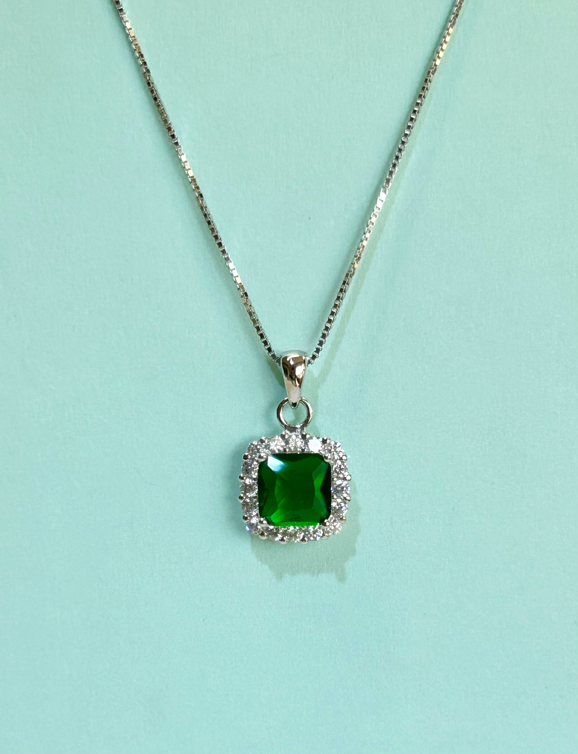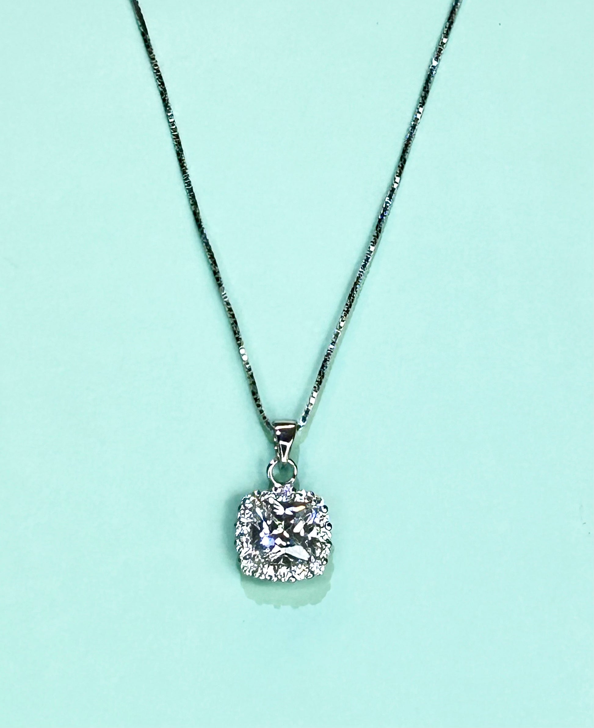 Collana stile Kate con zircone centrale quadrato e piccoli zirconi bianchi a contorno.