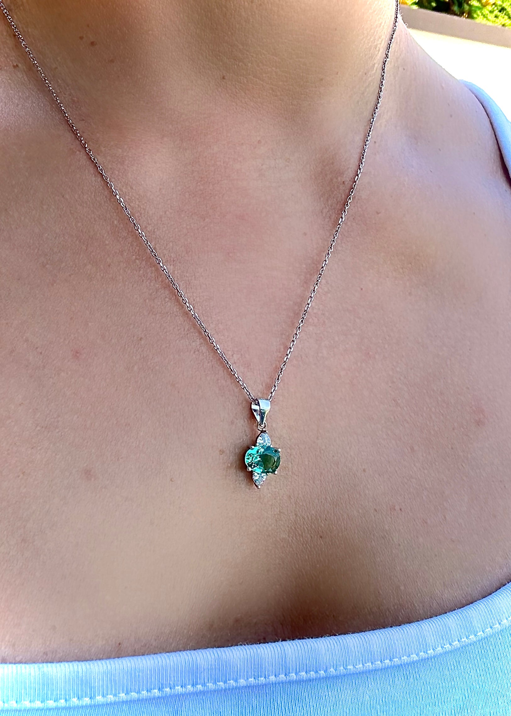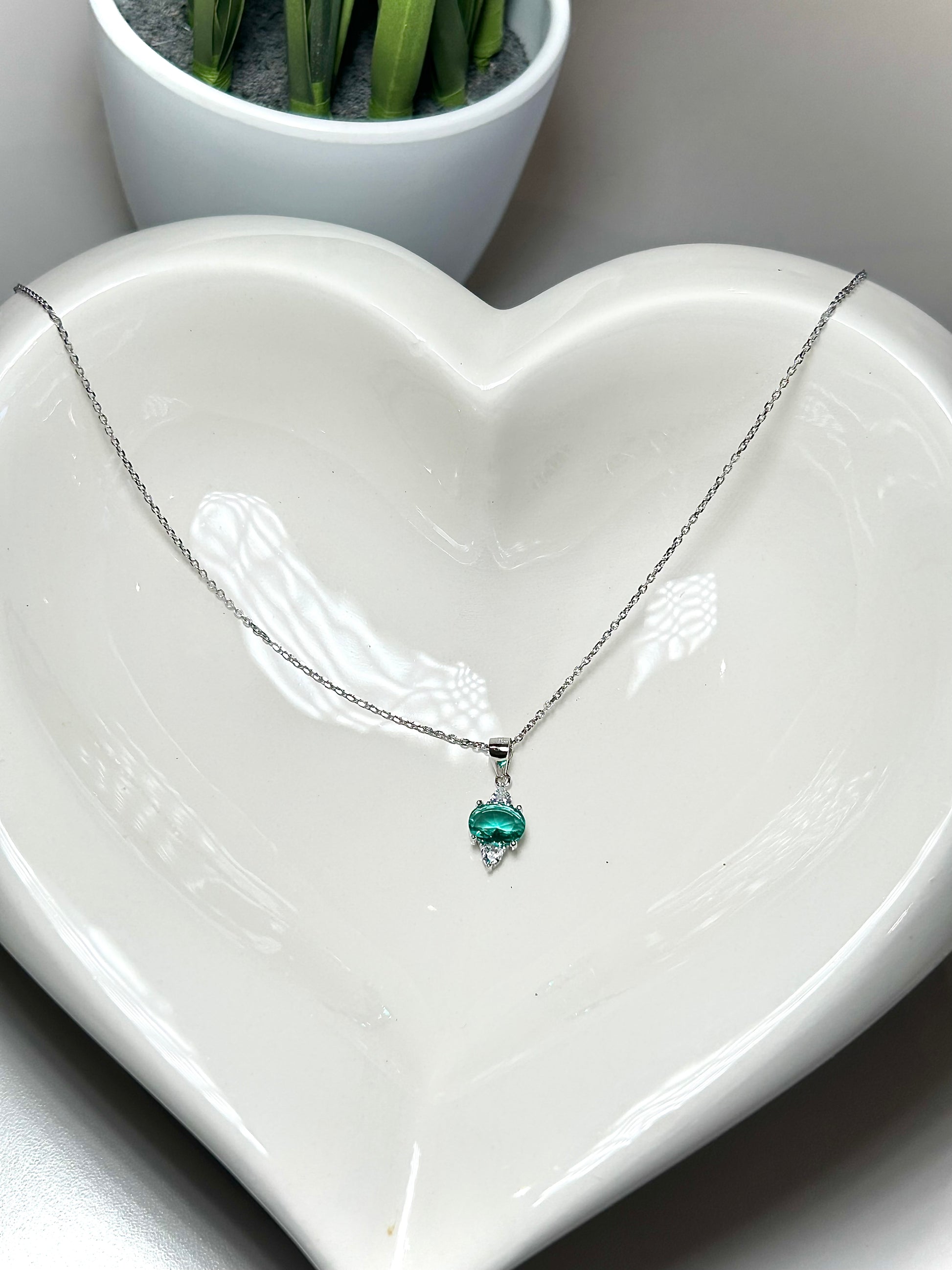 Il girocollo della collezione Marea è ispirato alla freschezza e alla luce delle acque verdi e cristalline del mare racchiuse in uno splendido zircone ovale centrale mentre i delicati zirconi bianchi a cuore donano brillantezza e armonia. Un design essenziale ma raffinato, pensato per chi ama indossare un tocco di eleganza ispirato alla natura.
