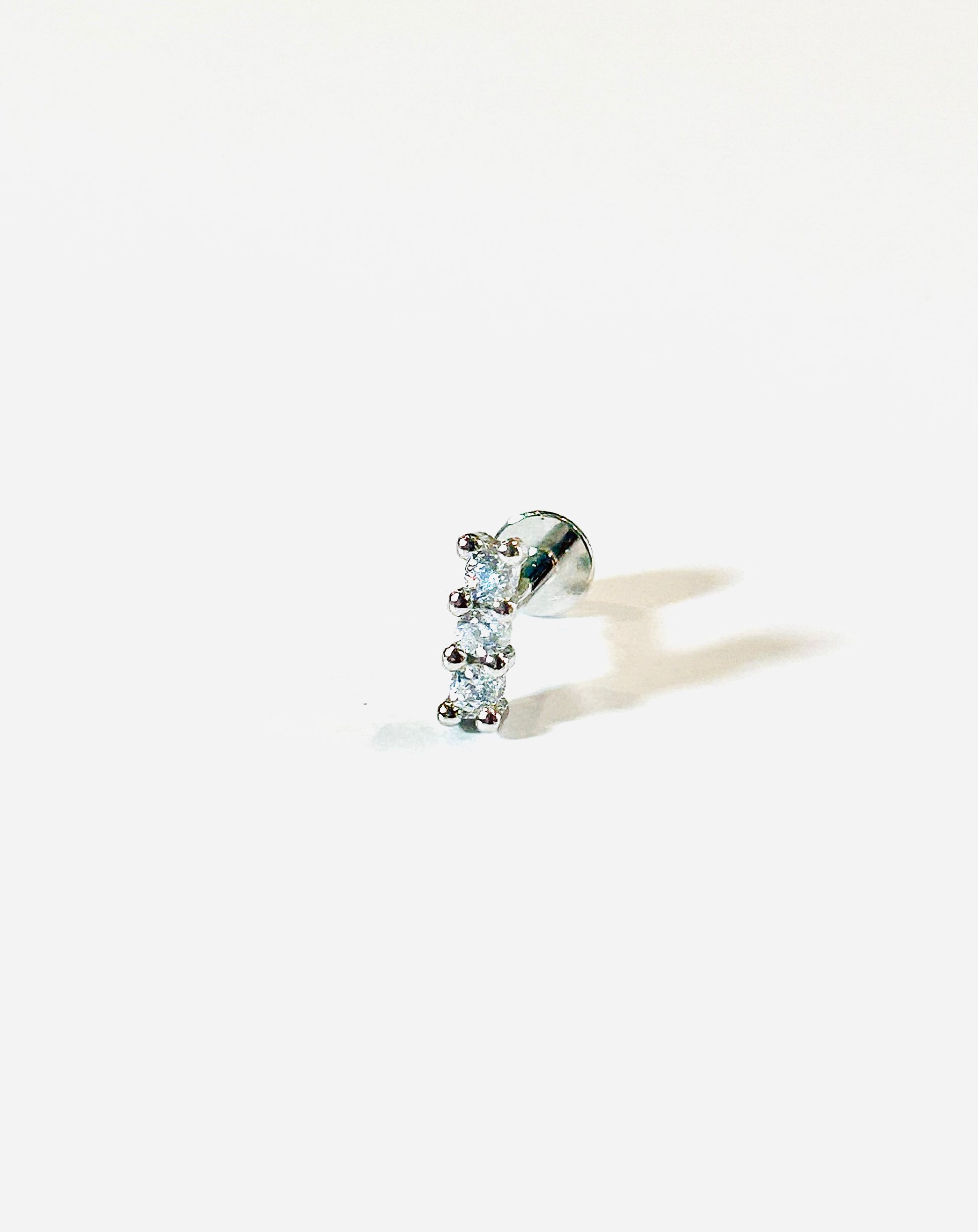 Piccoli e delicati i piercing mini tennis sonouna barretta di 3 cubica zirconia bianchi luminosi, realizzati in argento 925 placcato rodio sono perfetti per chi vuole aggiungere un tocco di luce discreto ed elegante.
