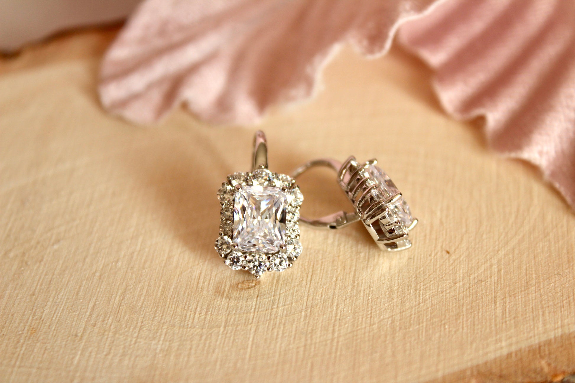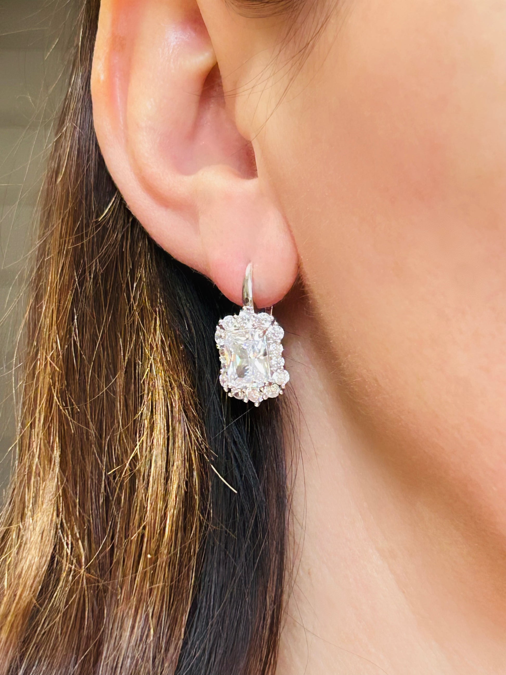 Orecchini eleganti e luminosi con zirconia centrale rettangolare incorniciata da zirconi cubici brillanti. Realizzati in argento 925 placcato rodio, valorizzano il viso con una luce intensa e raffinata. La chiusura a scatto garantisce comfort e sicurezza. Un classico intramontabile dal giorno alla sera.