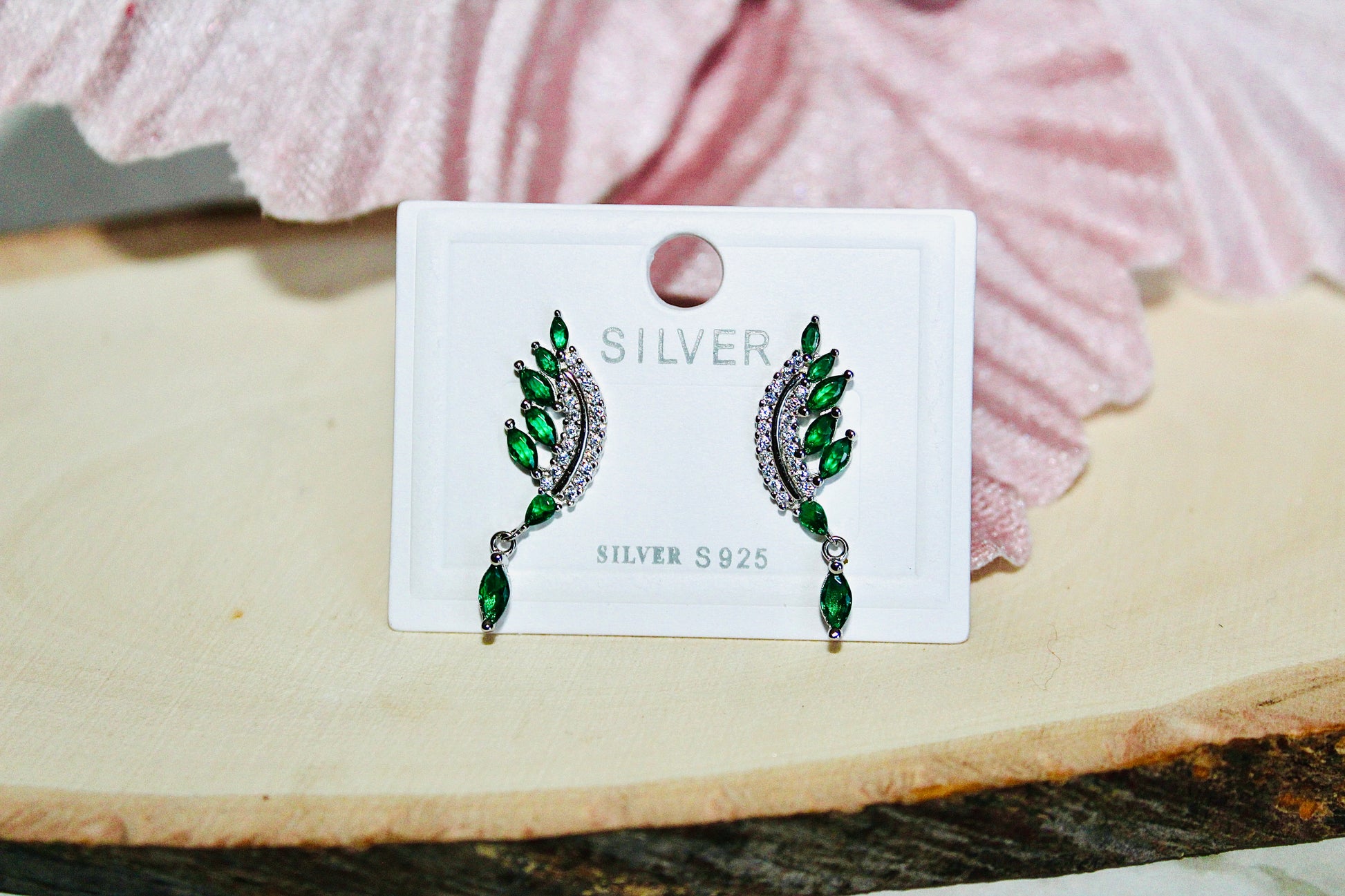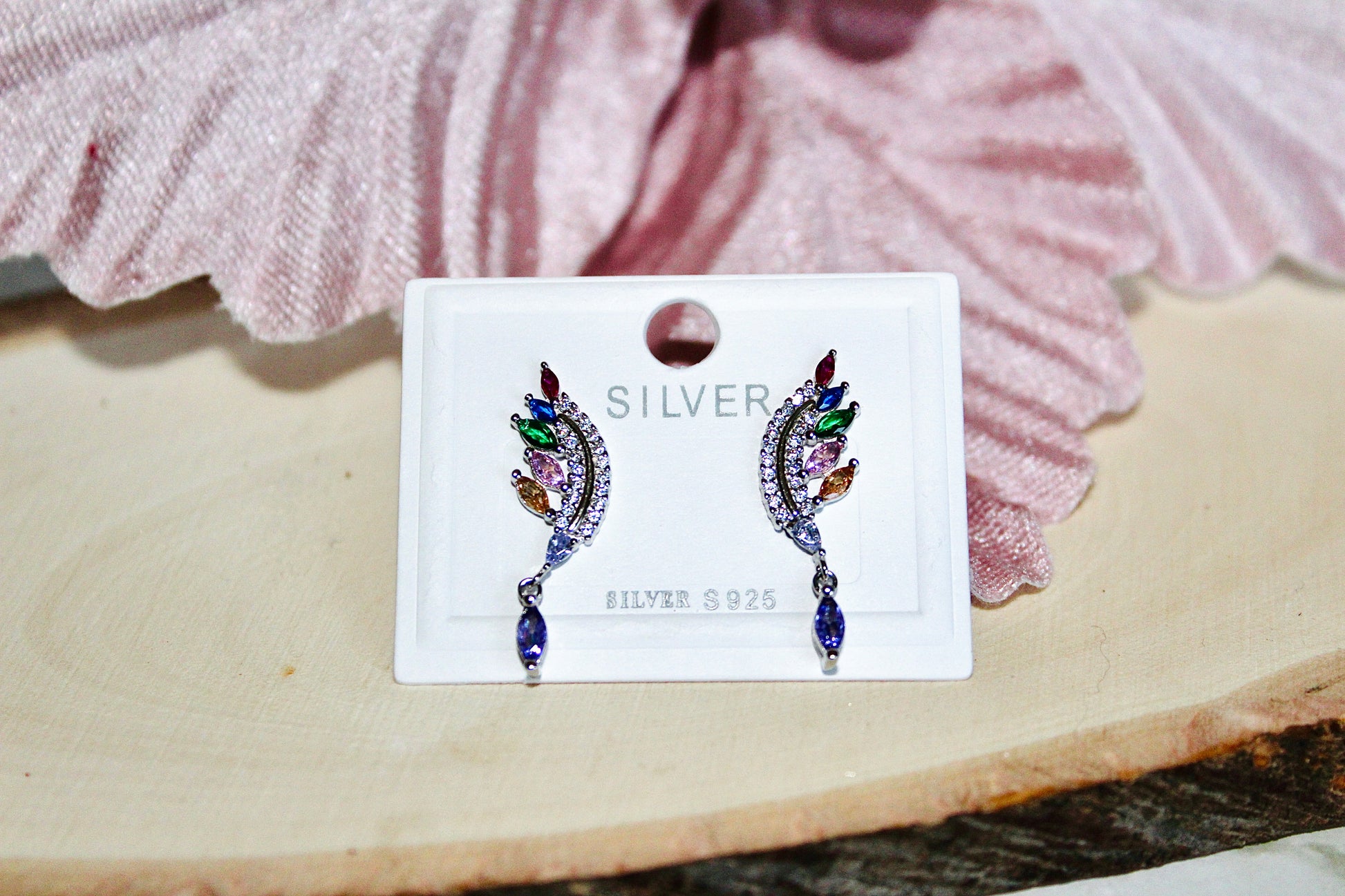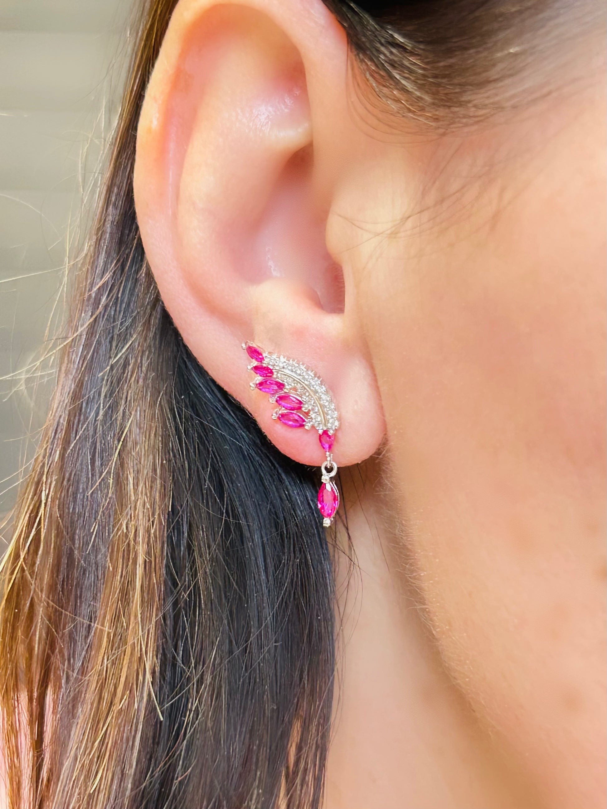 Orecchini in argento 925 impreziositi da zirconia luminosa, dal design che richiama la forma delicata di ali luminose. Le linee curve e le pietre marquise creano un elegante effetto movimento, valorizzando il lobo con raffinato carattere. Un gioiello scenografico ma leggero