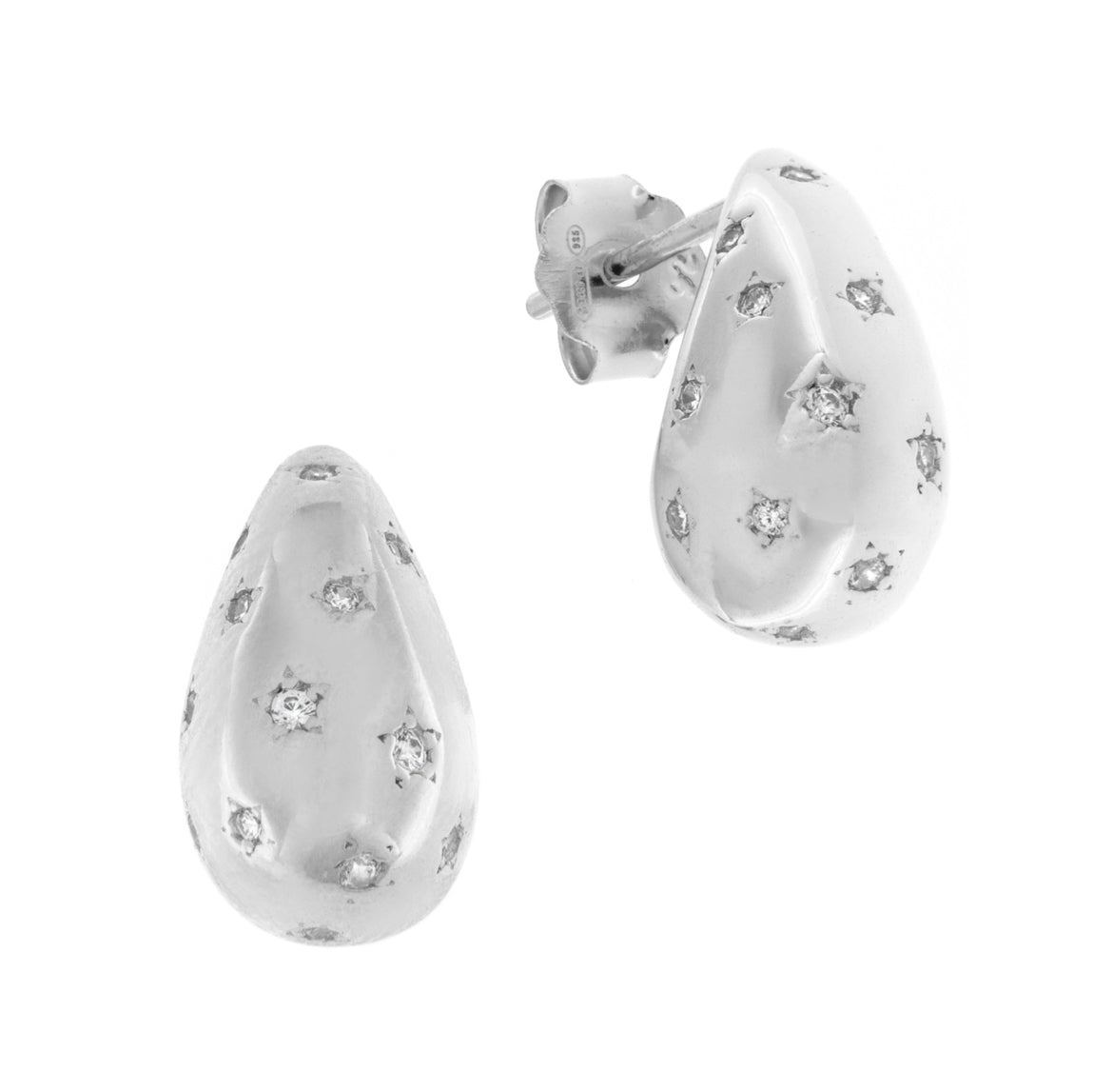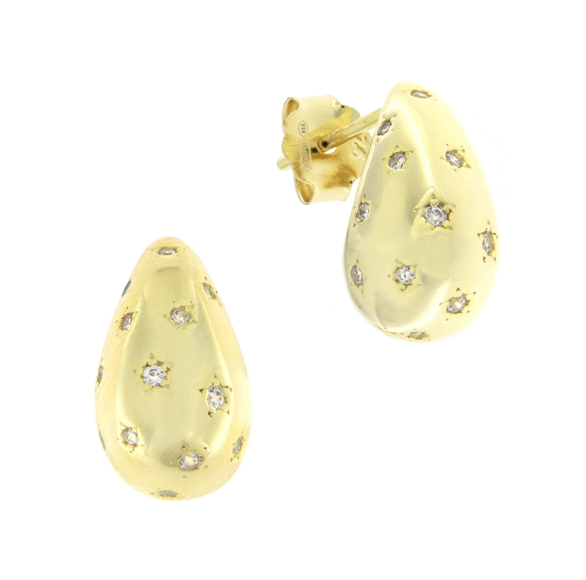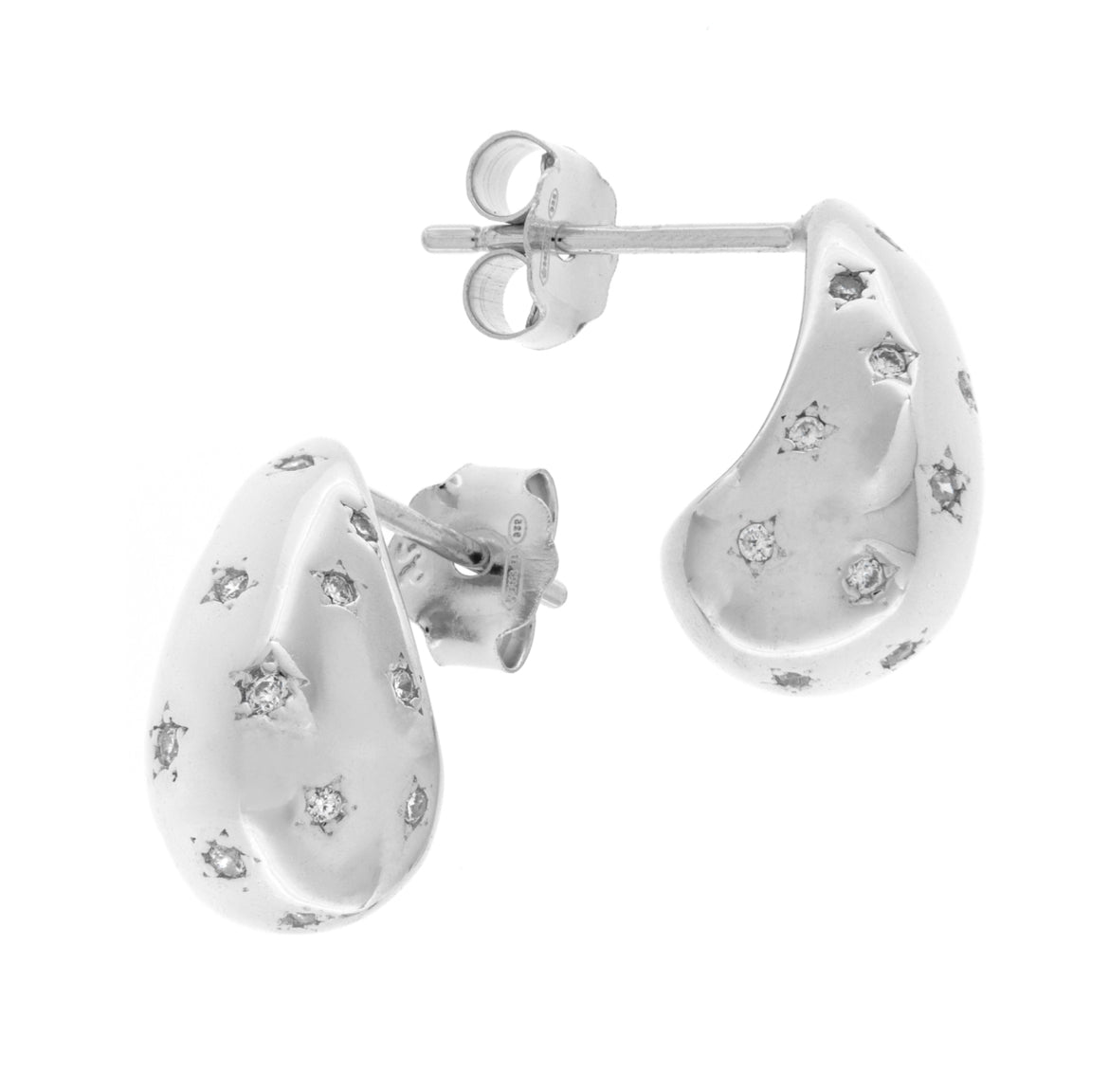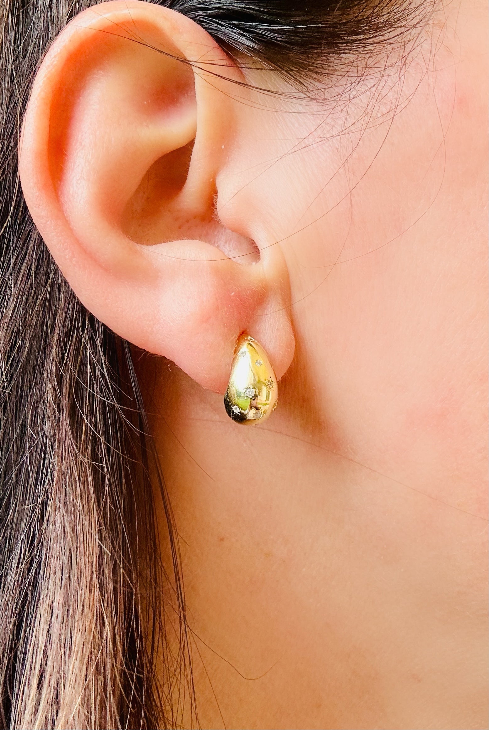 Il modello Astra è una promessa di luce incastonata nel metallo. Orecchini a lobo in argento 925 placcati oro giallo 18kt, punteggiati da zirconi brillanti che ricordano un cielo notturno trapuntato di stelle. La loro forma morbida ed essenziale li rende versatili ma mai banali. Per chi ama distinguersi con classe puntando sempre in alto.