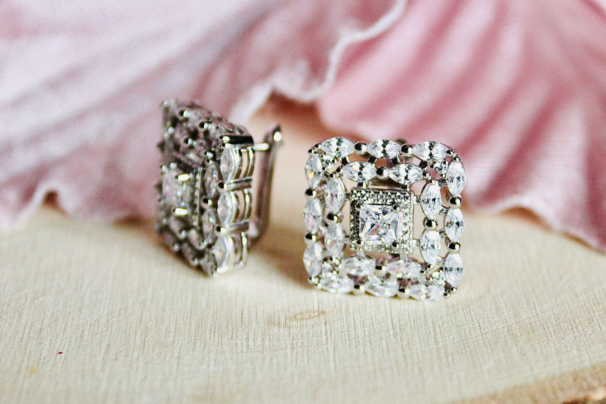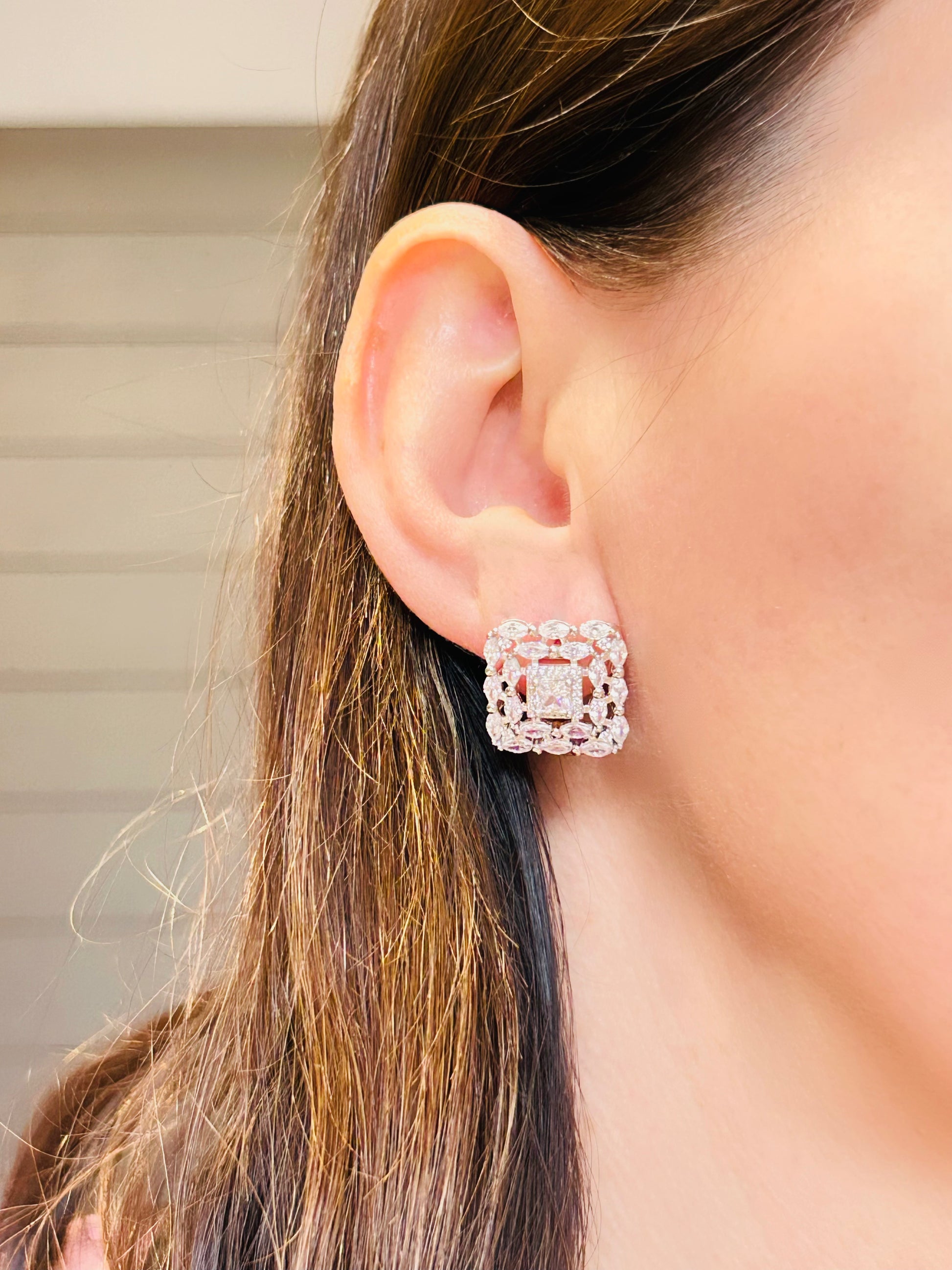 Orecchini in argento 925 impreziositi da zirconia cubica con centrale taglio carré e cornice di taglio marquise. Il design geometrico e luminoso dona carattere ed eleganza. Perfetti da indossare da soli o abbinati alla collana Clèa per un look ordinato e sofisticato.