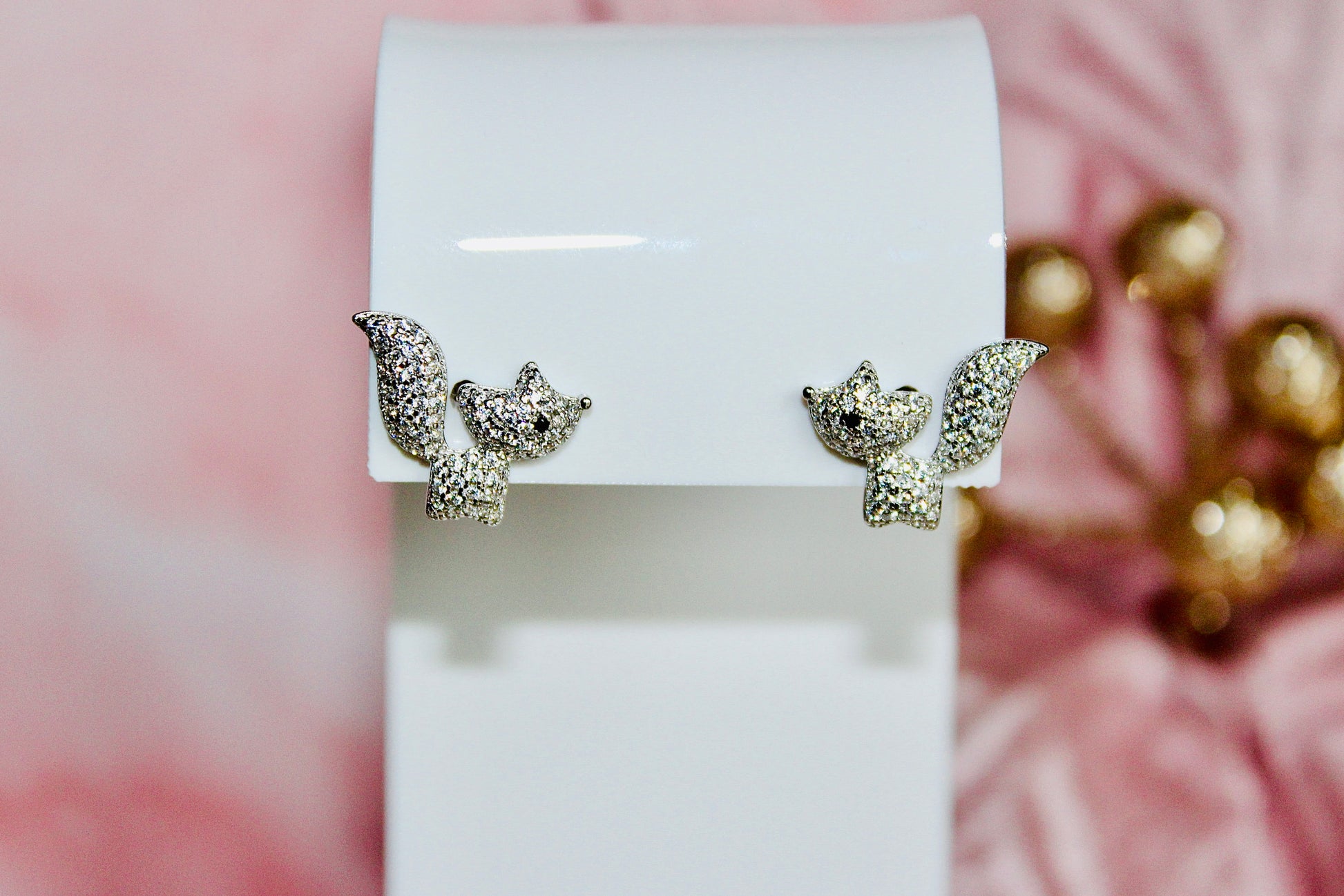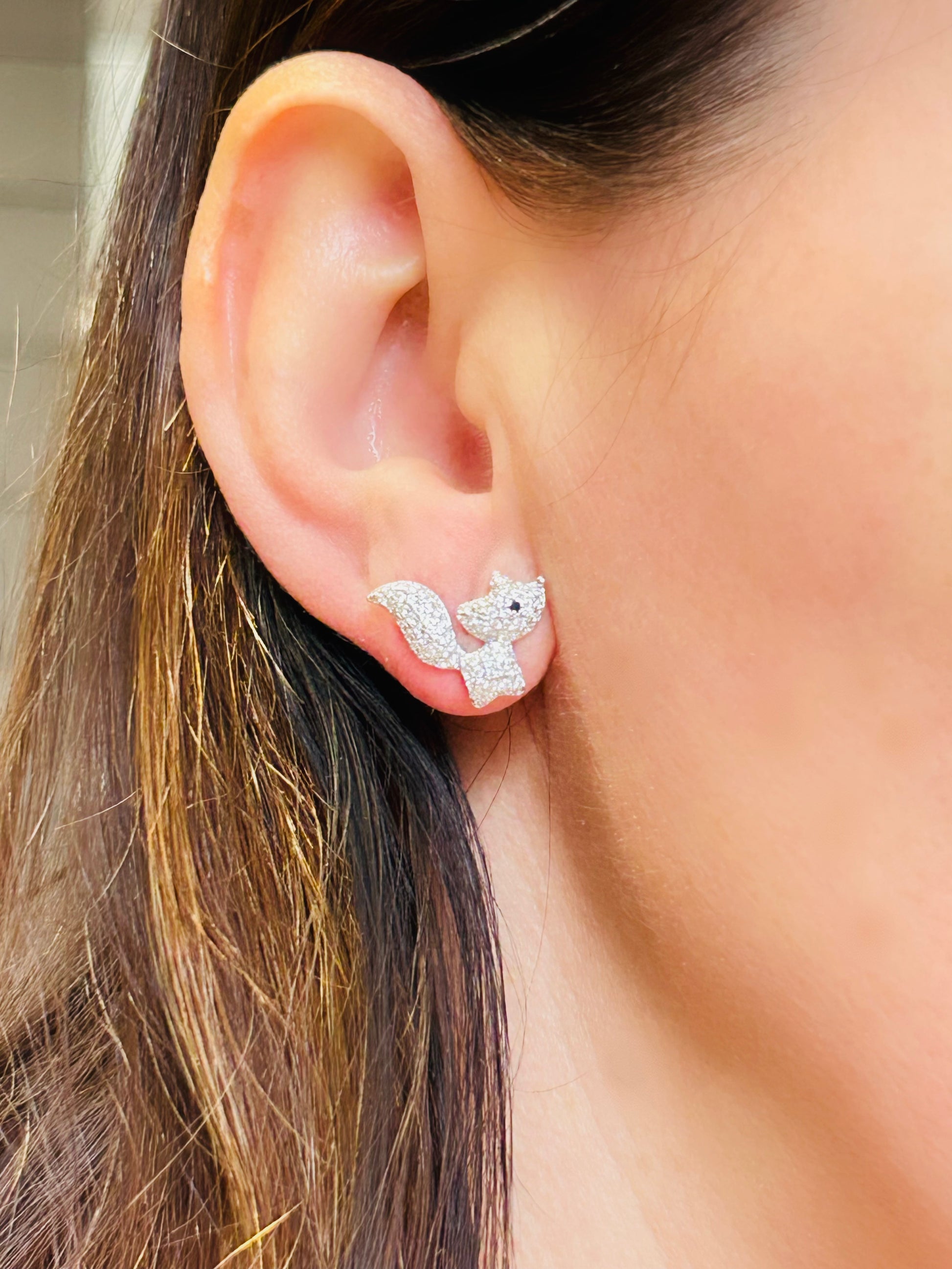 Dolci ma decisi, questi orecchini a forma di volpe uniscono un design giocoso a una brillantezza raffinata. Realizzati in argento 925, sono impreziositi da zirconi cubici luminosi che catturano la luce con discrezione.