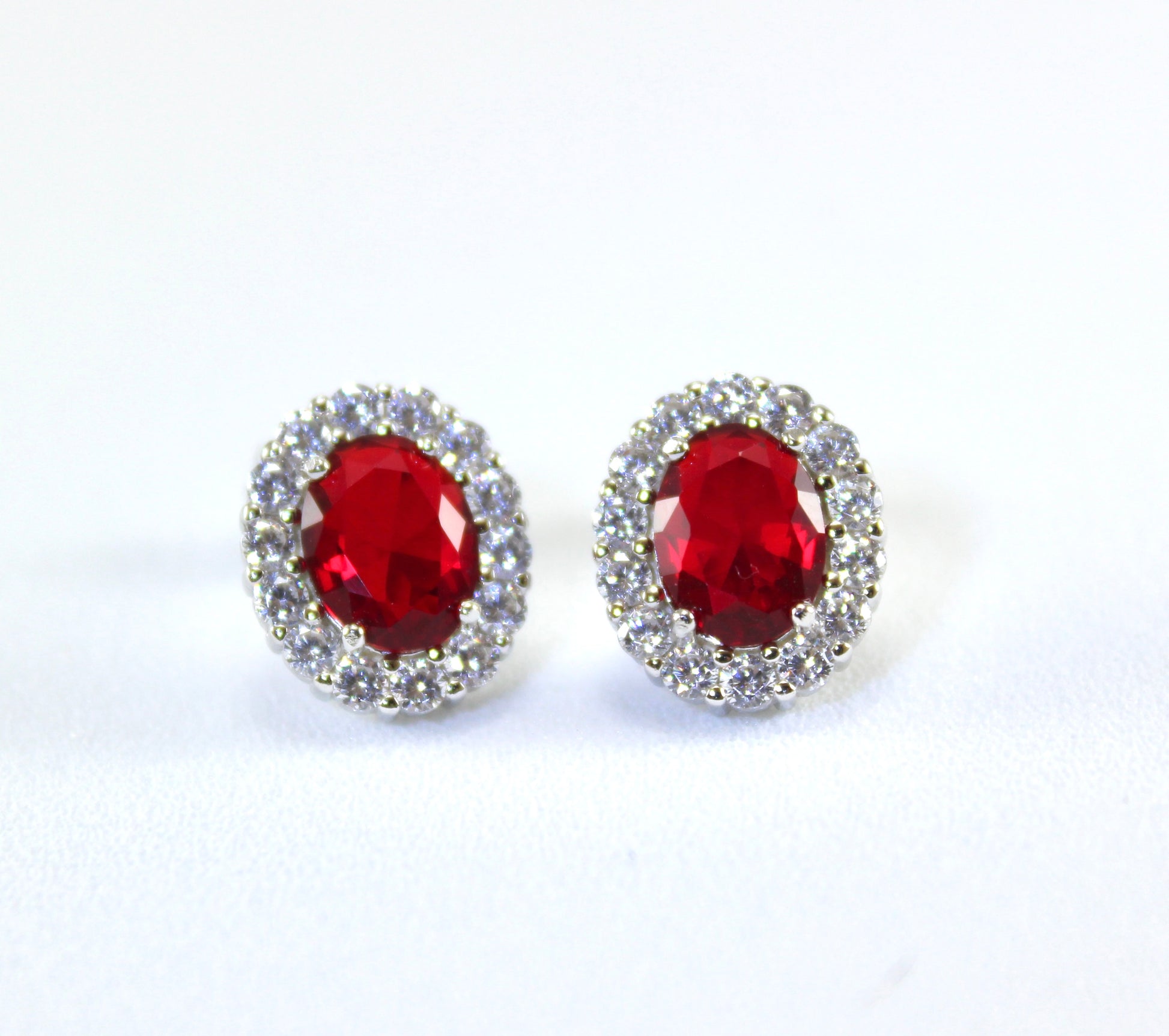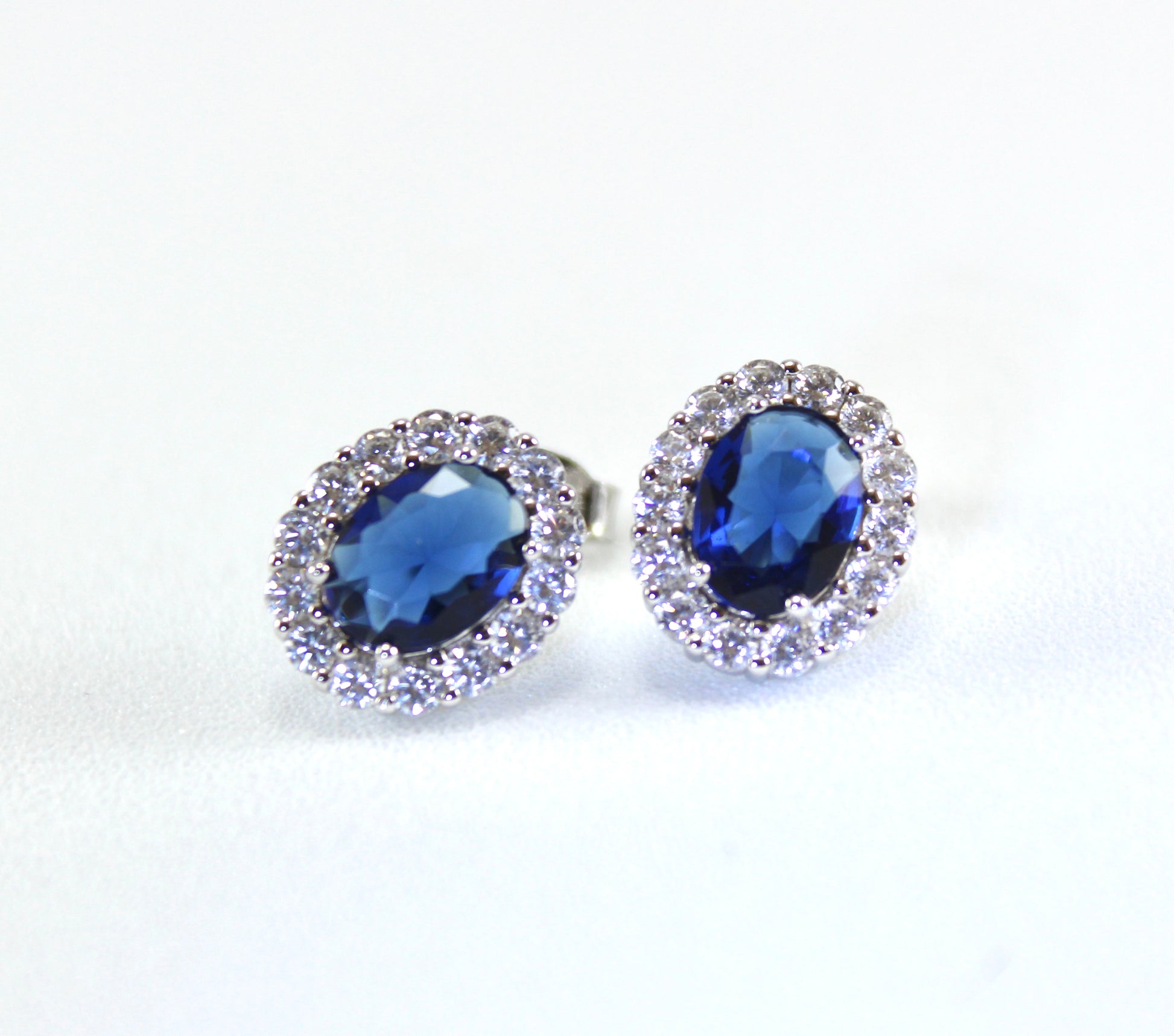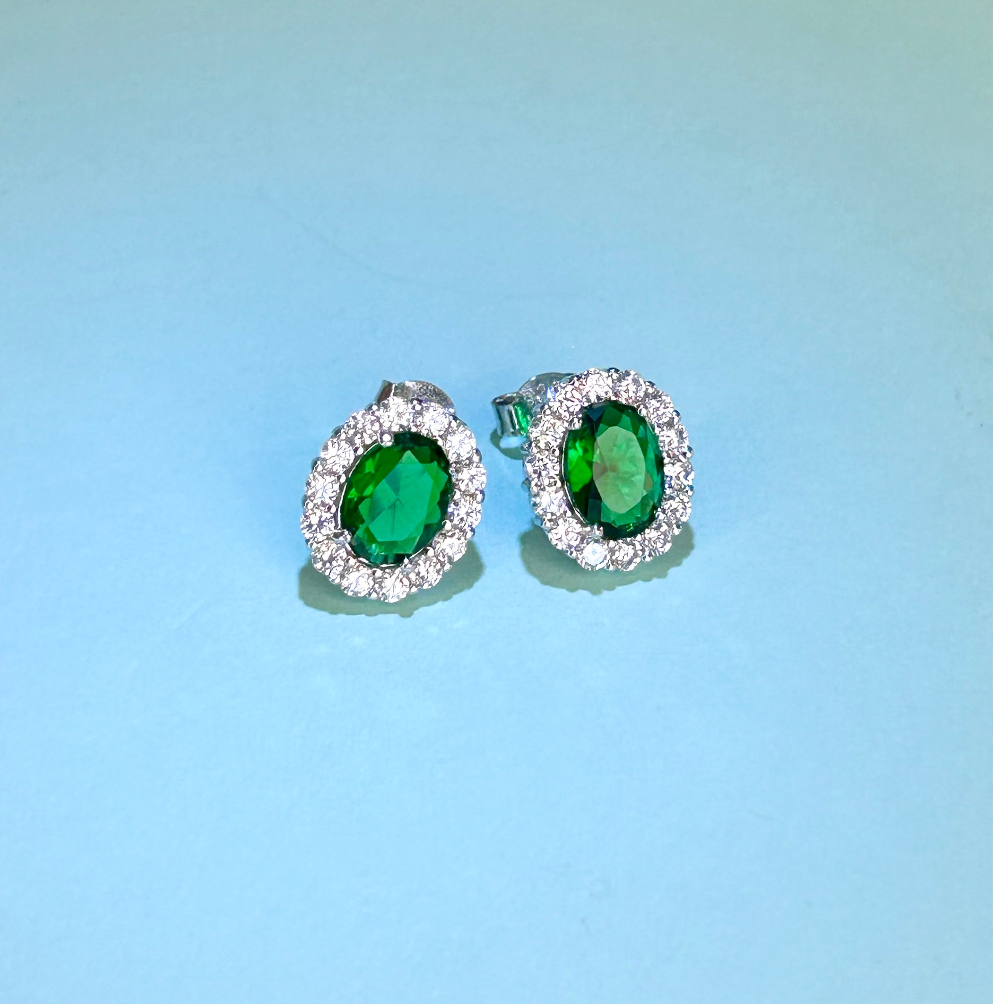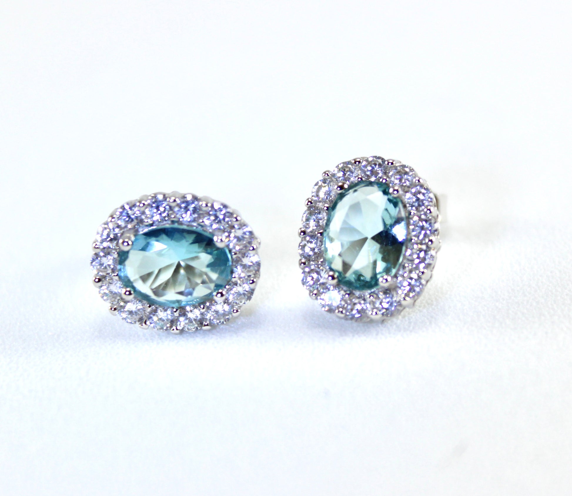Orecchini a perno con zirconi ovali da 10x8mm contornati da piccoli zirconi bianchi da 2mm. Un orecchino di classe ed eleganza senza tempo.