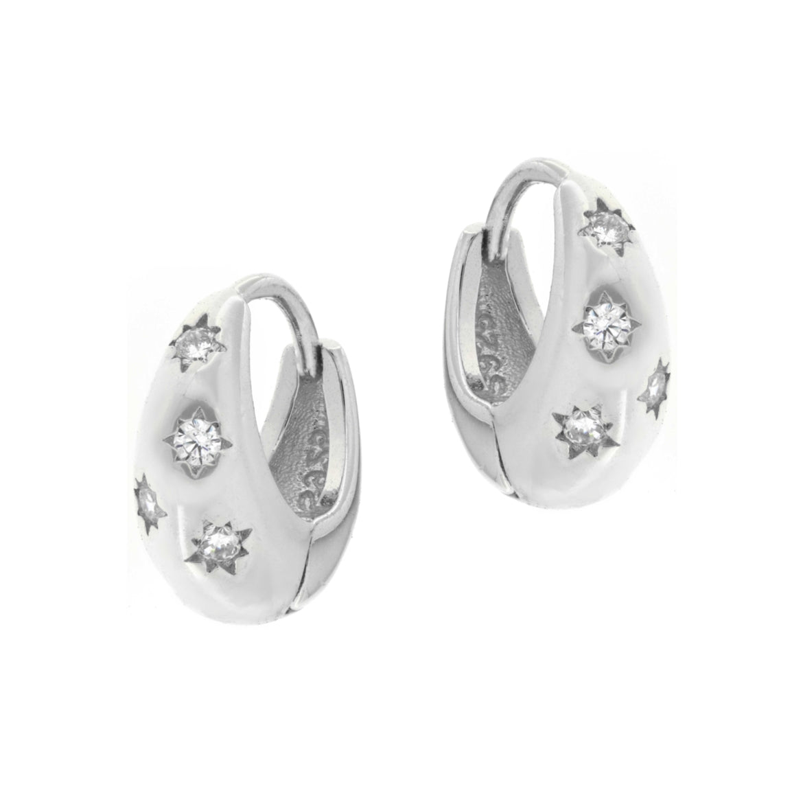 Piccoli cerchi, grande luce. Gli orecchini Lyra sono realizzati in argento 925 placcato oro 18kt e impreziositi da zirconi incastonati in delicate stelle. Compatti e leggeri, si distinguono per la loro forma morbida avvolgente, perfetta per essere indossata ogni giorno con eleganza e disinvoltura.