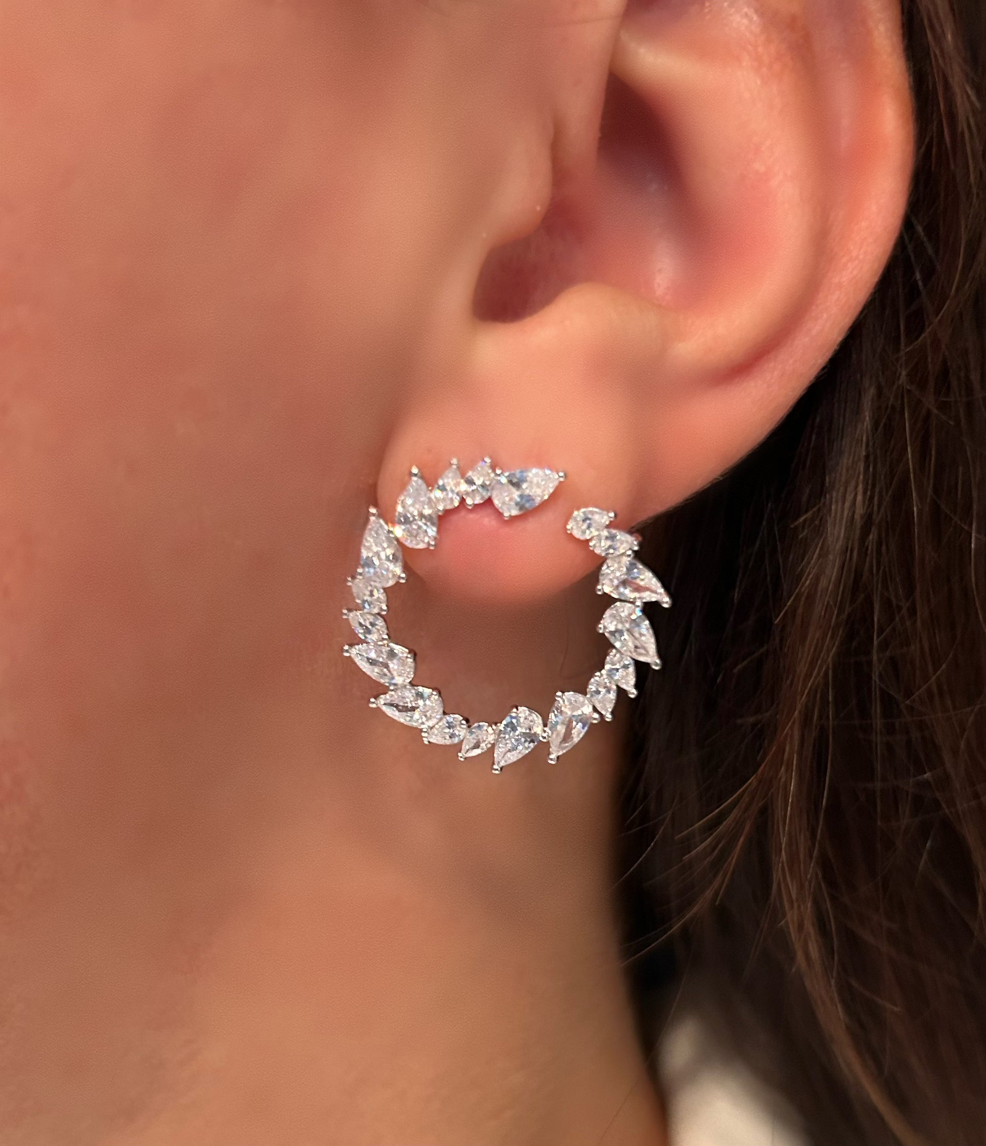 Realizzati in argento 925 rodiato e impreziositi da zirconia tripla A taglio goccia, gli orecchini Rugiada brillano con la stessa purezza delle gocce del mattino che scivolano sui petali di un fiore. Eleganti e luminosi, sono pensati per aggiungere un tocco naturale di freschezza e raffinatezza ad ogni look. Le sue misure sono importanti 2,5cm. Un design raffinato e luminoso.